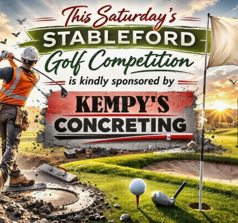 Kempsy’s concrete is back on board. Be assured there will be some great prizes up for grabs. Grab a mate and hit the course, I’m sure there will be some refreshments in order after golf.