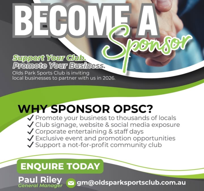 Partner with Olds Park Sports Club and put your brand in front of members, players, families and visitors all year round.