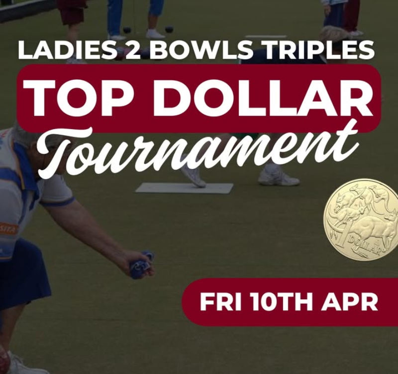 Join us on Friday 10th April for our Ladies Top Dollar Bowls Tournament. Sponsored by Tatura Farm Supplies โฐ Reg 9:30am & Starts 10am