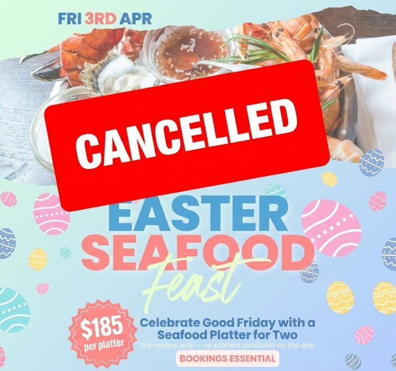 π’ Members and guests – unfortunately, we have made the decision to cancel our Easter Seafood Feast originally planned for Good Friday (3rd April). We apologise for any inconvenience caused π