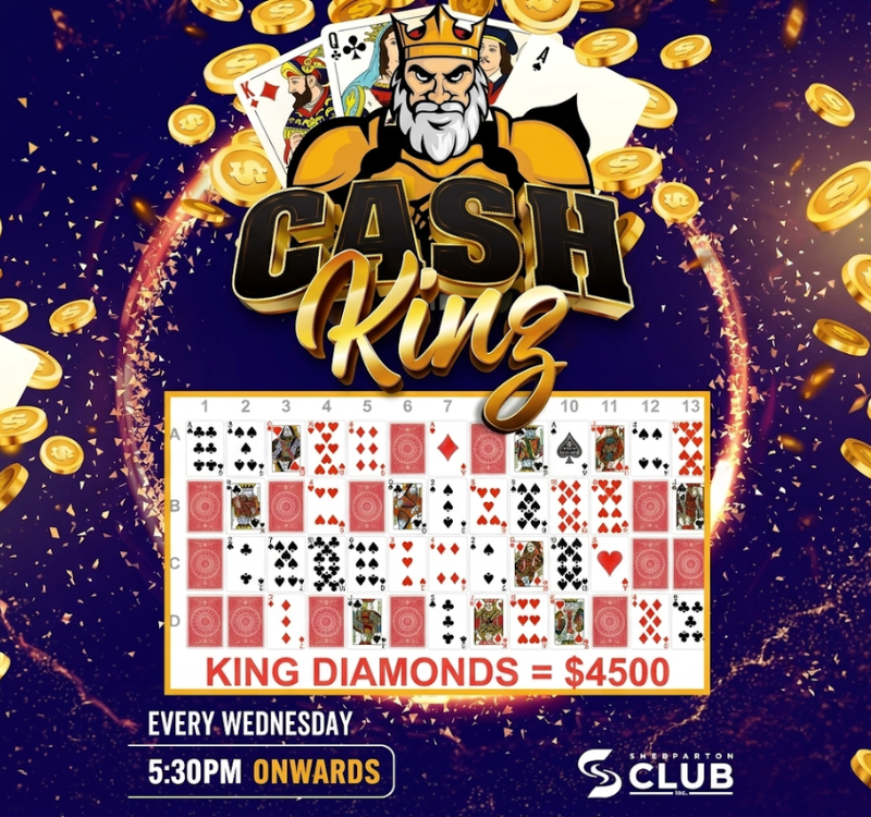 Members, don’t miss your chance at a massive $4,500 jackpot this Wednesday (1st April). Be here from 5:30pm for a chance to play CashKing and reveal the elusive King of Diamonds to take home this life changing prize.