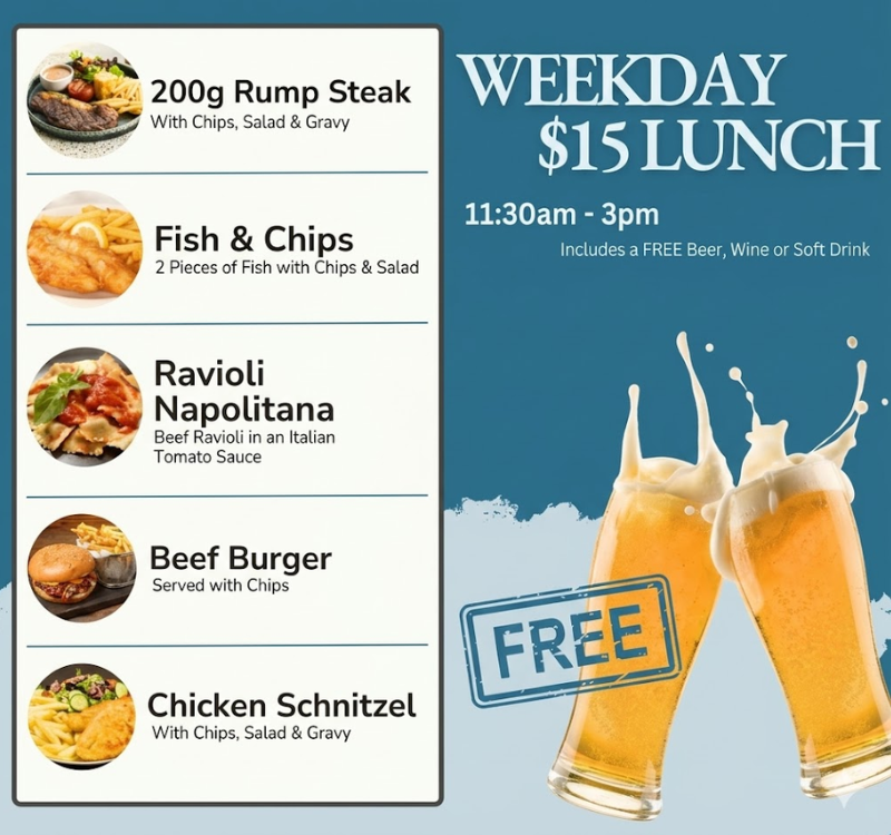 These $15 lunch specials all come with a house beer, wine or soft drink of your choice.