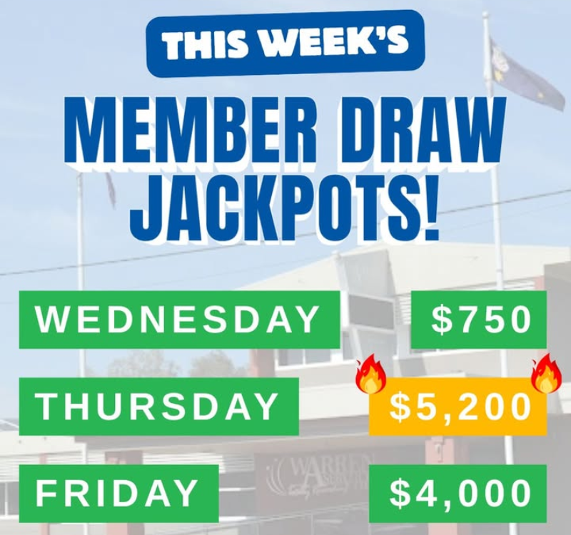 Hey members, wanna kick off 2026 with a big cash boost? ๐Ÿ’ฐ๐Ÿ’ฐ Make sure you pop into the Club this week for our Member Draws, drawn after our Raffles on Wednesday, Thursday and Friday nights. You must be here, and you MUST be a member! Good luck to everyone ๐Ÿคž