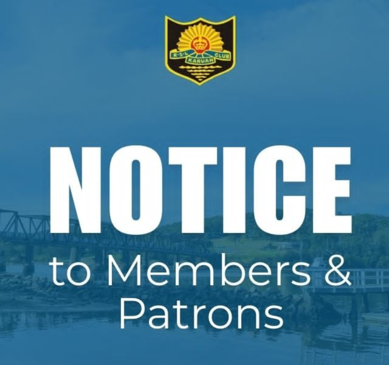 Thank you for your continued support and understanding. Other areas of the Club will remain open as usual, and our team will be on hand to assist wherever possible.