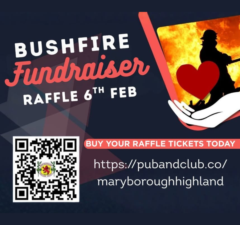 Bushfire Fundraiser THIS Fri 🔥 Buy raffle tickets now, 100% goes to Fire Brigades & Harcourt Appeal!