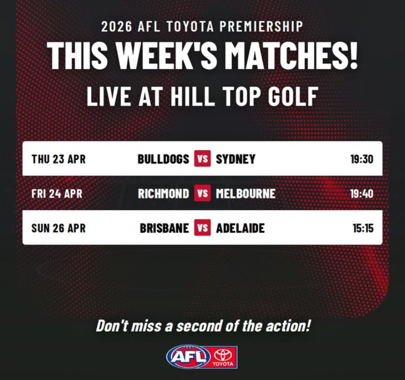 🏉 Watch the AFL at Hill Top this week!