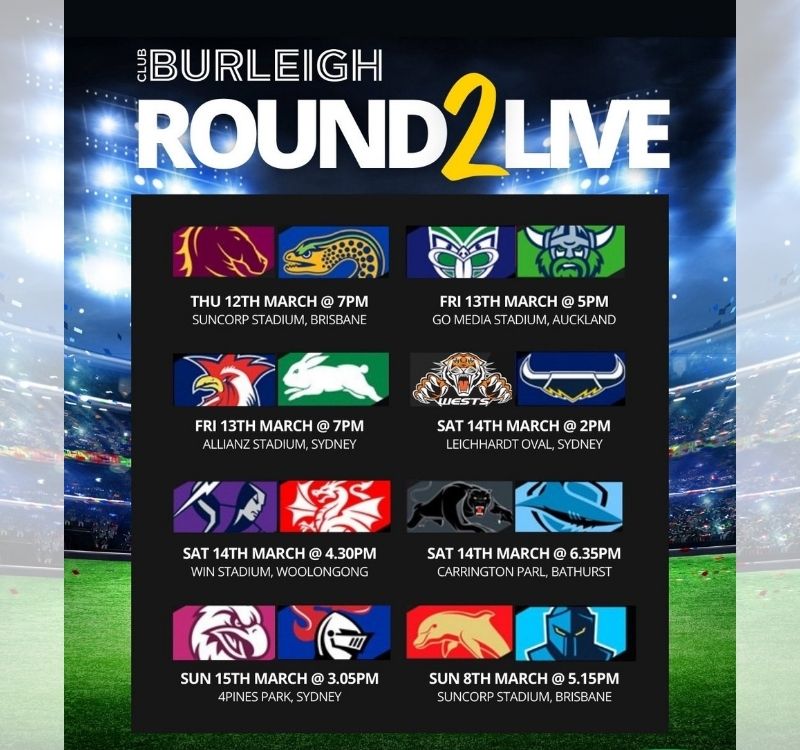 ๐๐ป Footyโs back! The seasons have kicked off for the NRL and AFL, and Club Burleighโs Sports Bar is your local home of live sport.