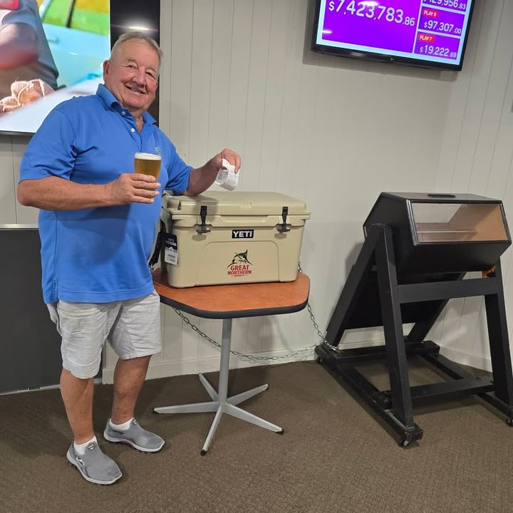 For every Schooner of Great Northern Supercrisp purchased by our members, you will receive an entry for your chance to win a YETI Esky.. Just like “Big D” here