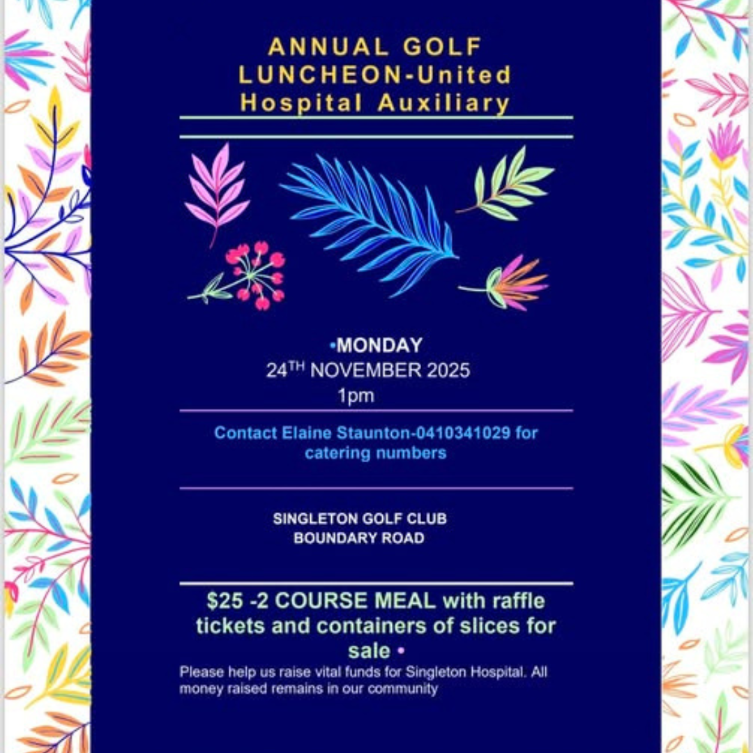 Book in for the Annual Golf Lunch at Singleton Golf Club in support of the United Hospital Auxillary on Monday 24th November