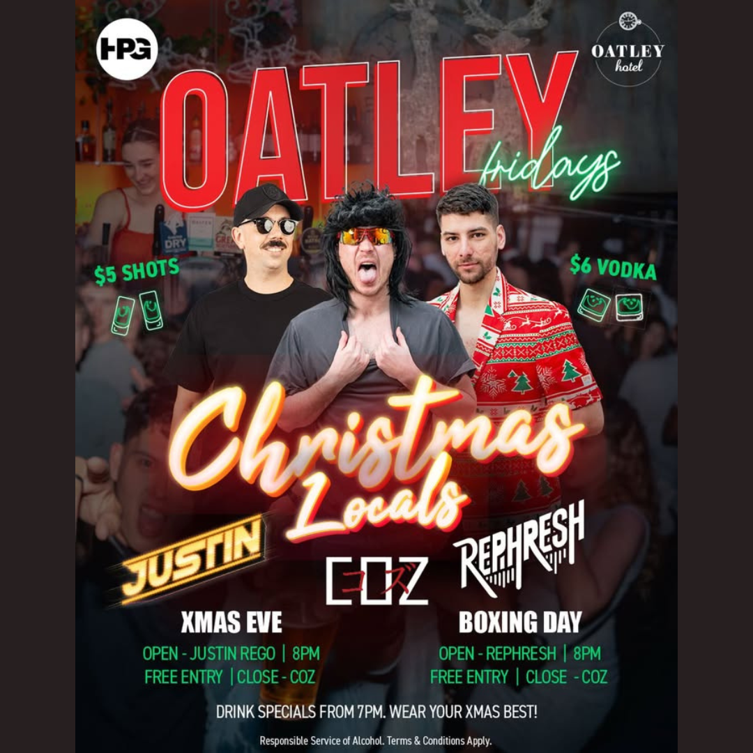 We have a local talent lineup to help you celebrate Christmas Eve and Boxing Day Oatley Fridays style