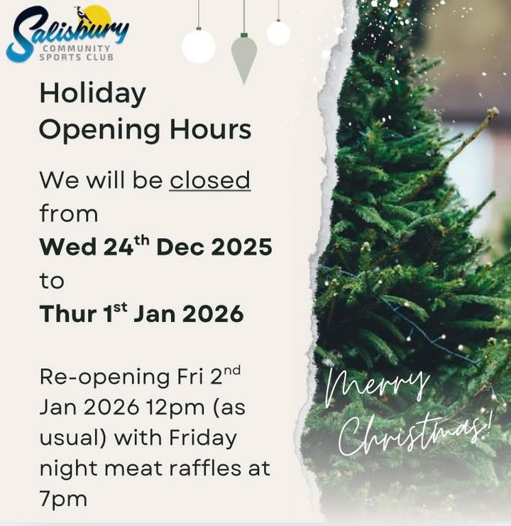 We’ll be taking a well-deserved break over the Christmas period and will be closed from 24 December to 1 January, reopening as normal on 2 January, including our Friday night raffles and members draw.