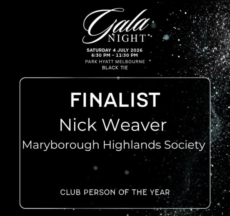 Nickโs passion, leadership and commitment to the Maryborough community go far beyond the walls of the Highland Society. Through tireless fundraising efforts, countless volunteer hours and genuine care for others, Nick has helped raise over $350,000 for the Maryborough District Health Service Oncology Unit, making a real and lasting difference for local families.