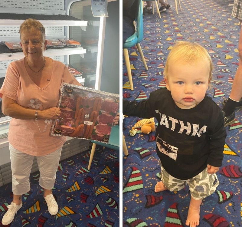 Congrats to Kath who scored the big meat tray at Friday raffles 🥩 Young Marlow already loving the fun!