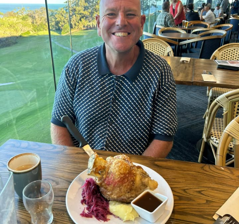 Dane couldn’t get enough of his Pork Knuckle 🍖 Crispy skin, mash, braised red cabbage & gravy!