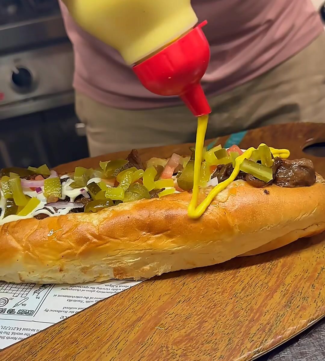 Don’t miss out out chef’s special Foot Long Steak Hot Dog with richness of caramelised onion, homemade cheese sauce, jalapeno gerkin salsa and chips. #Wp