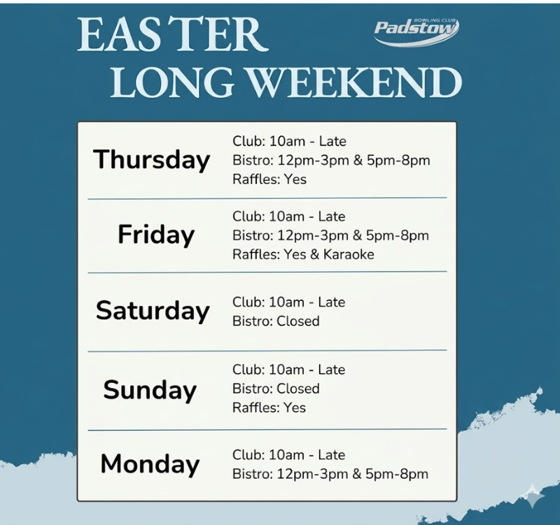Posted on April 3, 2026April 3, 2026 by Scott SmithEaster Long Weekend trading hours 🐣 Kick back, relax & enjoy every moment at the Bowlo! The Easter Long Weekend is here!! Time to kick back and relax at the Bowlo. We’re open for trade as usual all long weekend. View on Facebook