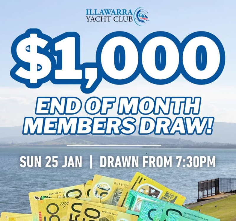 End-of-month draw this Sun 25 Jan 💵 One member wins $1,000 guaranteed – drawn 7:30pm, must be present!