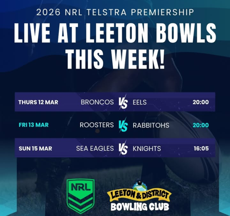 Join us at Leeton Bowls this week for live NRL on the big screen – free, loud, and full of energy.