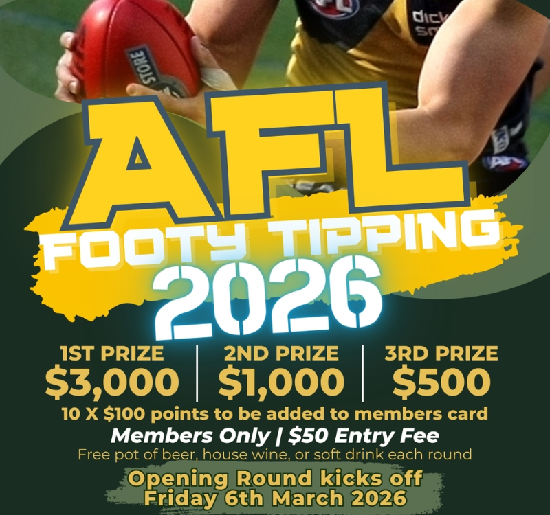 Footy tipping is back – $50 entry for members w/ prizes up to $3K + a drink every week – sign up now!