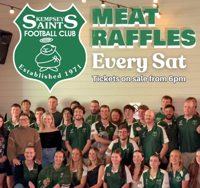 Kempsey Saints Football Club Raffles are BACK from this Saturday at the Top Pub! ⚽🍖 Come and join us for a shot at winning some meat trays while supporting your local football club. Tix on sale from 6pm. See you then!