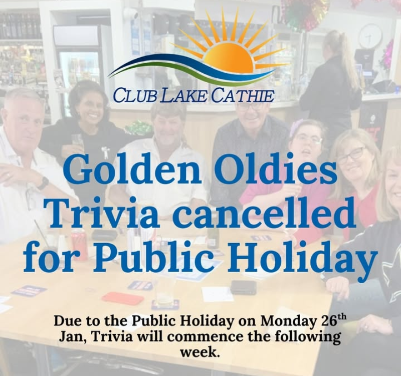 Please note there will be no Golden Oldies Trivia this Monday 26th January due to the public holiday and long weekend 📅