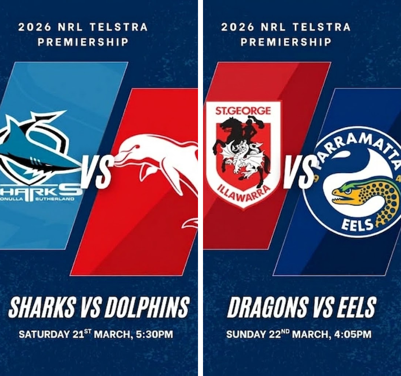 Join us this weekend for your NRL action as Sharks vs Dolphins on Saturday, followed by Dragons vs Eels on Sunday π¦π