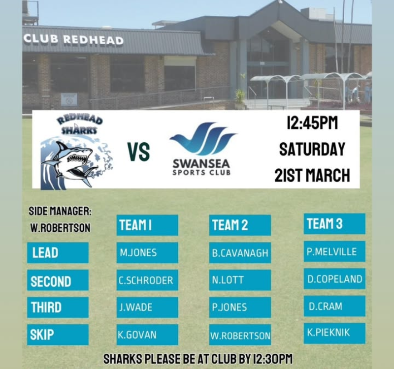 The greens are calling and the bowls are ready to roll! Join us this Saturday 21st March at 12:45pm as Club Redhead takes on Swansea Sports Club right here at home.