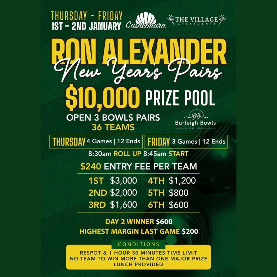 Ron Alexander New Year’s Pairs: 36 teams, 7 games over 2 days – $240 entry incl lunch, don’t miss it!
