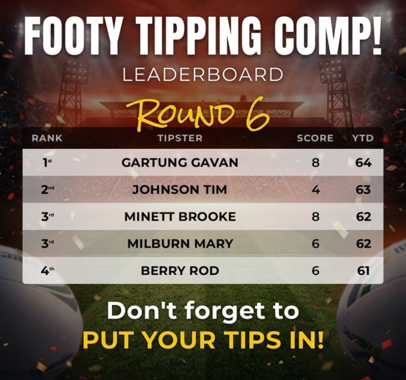 👏🏻🏉 Well done to our Round 6 Footy Tippers at Karuah RSL!