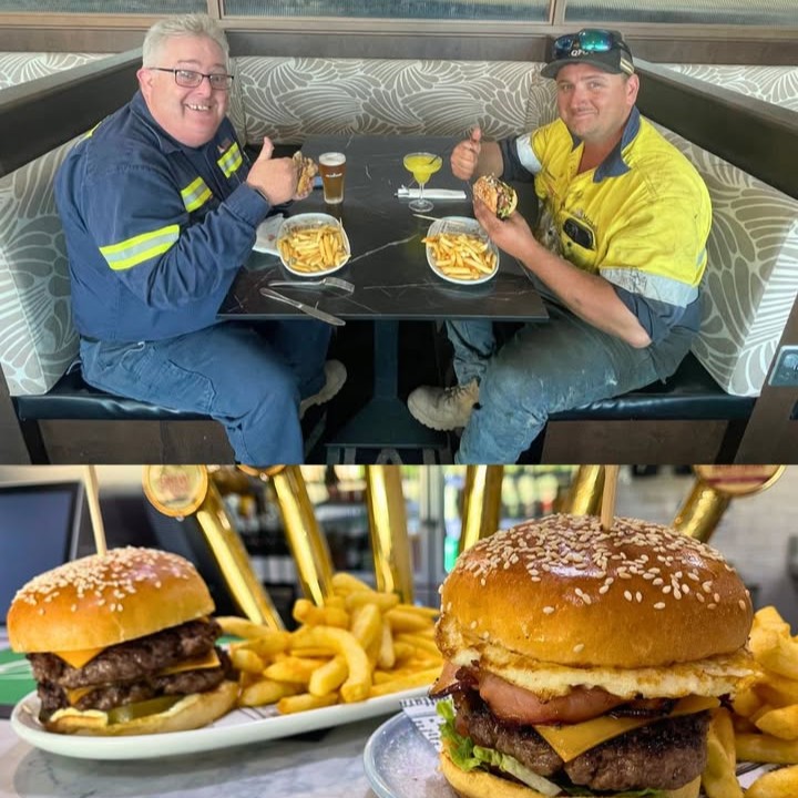 Robert & James couldn’t think of a better way to finish a day on the tools than with a Workies Awesome Beef Burger and a cold beer or Pineapple Margarita Slushie (nice choice James!)