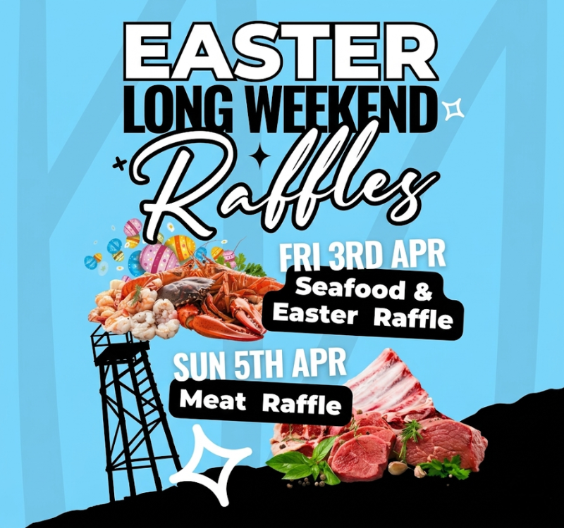 We have some very exciting raffles coming your way with our Seafood & Easter Raffle on Good Friday, plus our Sunday Meat Raffle.