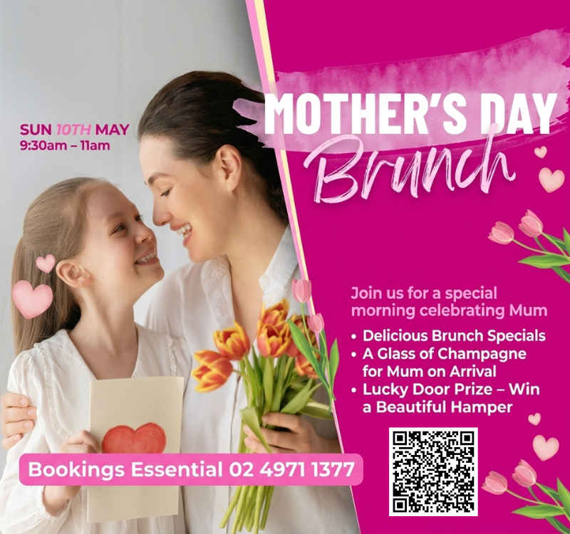 Spoil Mum this Mother’s Day on 10 May, 9:30am-11am – brunch specials, champagne & a lucky door prize!