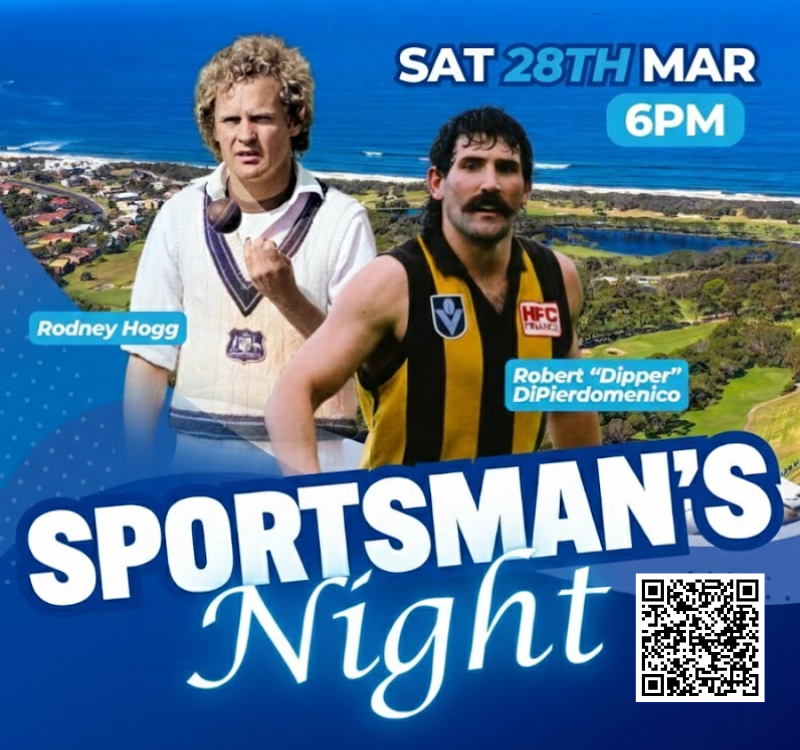 Sportsman’s Dinner w/ Rodney Hogg & Dipper DiPierdomenico on 28 Mar, 6pm – dinner, raffles & auction!