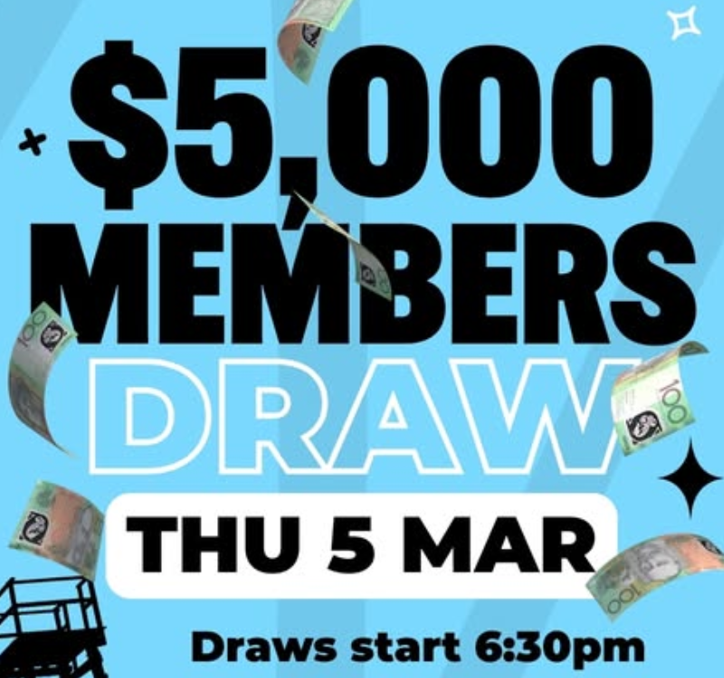 Be at Club Redhead EVERY Thursday for our Members Draw – if your name is called and you’re here at the club, the jackpot is YOURS! Drawn from 6:30pm.