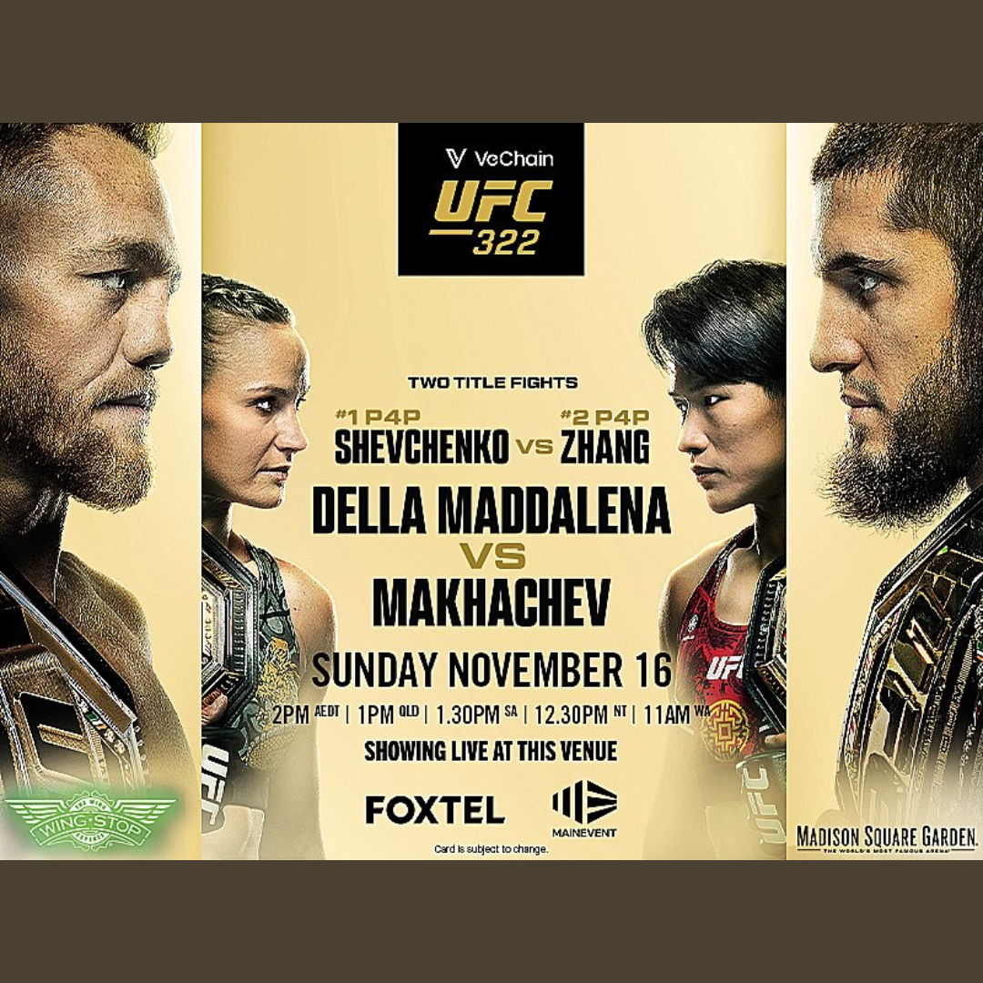 UFC 322 LIVE & LOUD Sun 16th Nov – doors 10am, full bistro menu from 12pm, book/walk in!