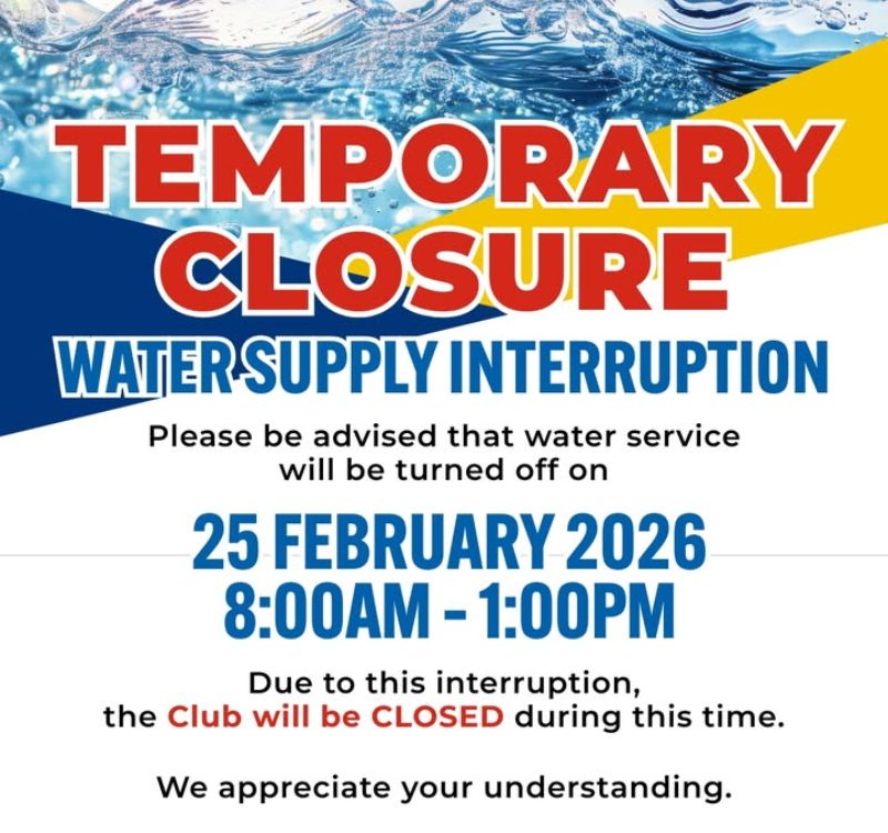 Due to a scheduled water supply interruption, Karuah RSL Club will be closed on 25th February from 8:00am to 1:00pm ⏰